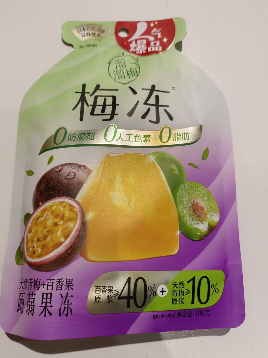 / 100g 溜溜梅 梅冻 蒟蒻果冻 天然青梅+百香果味 plum jelly