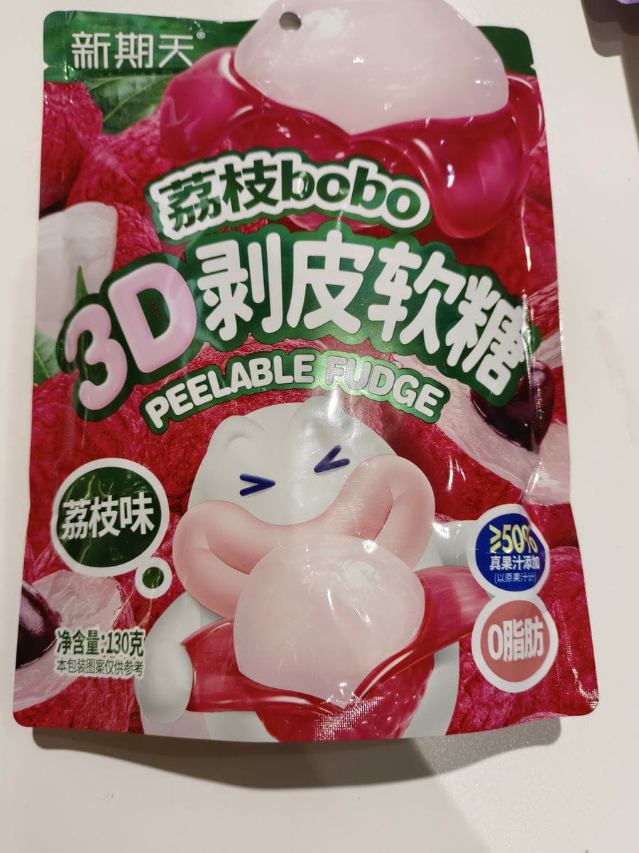 130g 新期天 3D剥皮软糖 荔枝味 peelable fudge lychee flavor