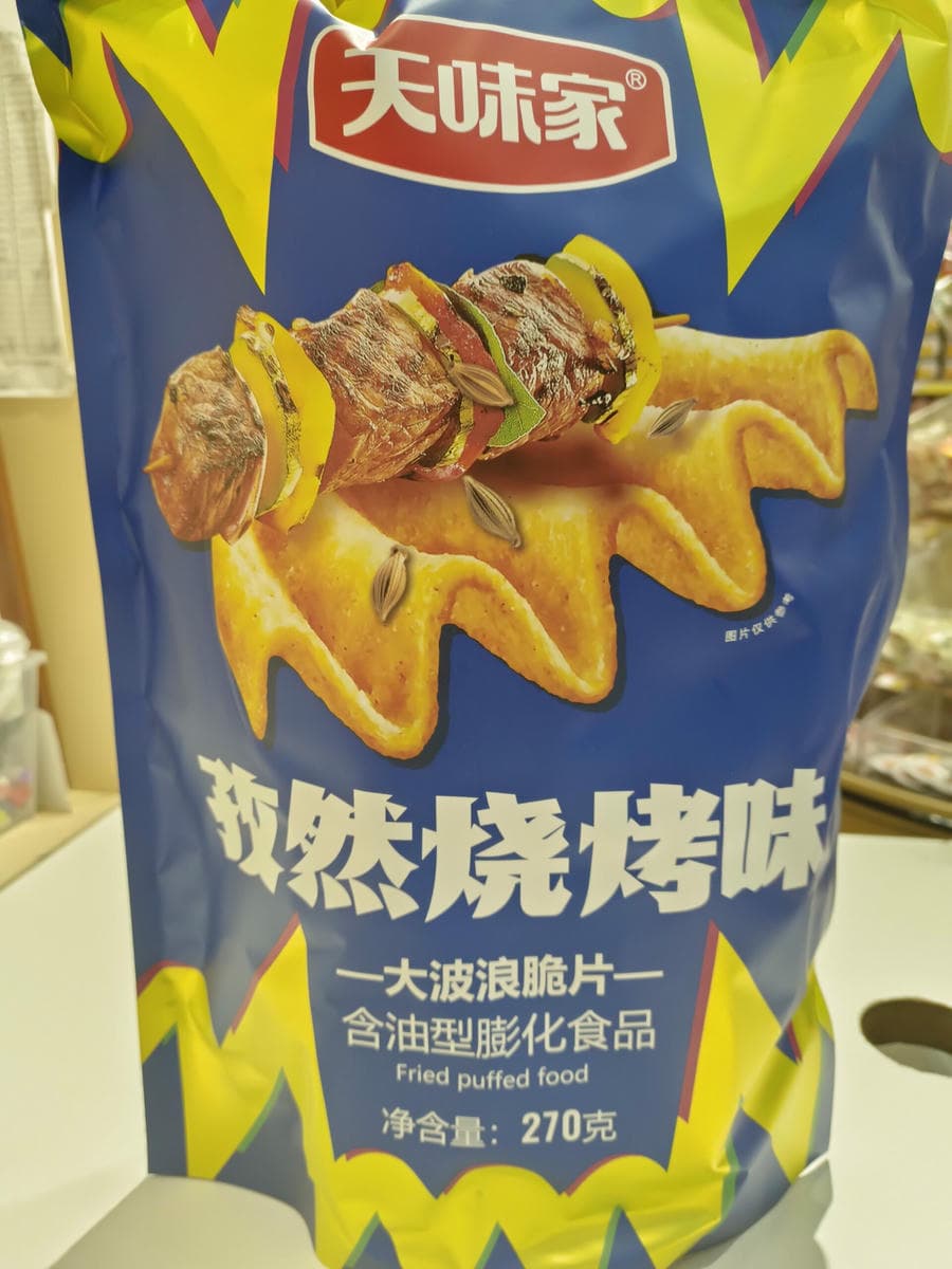 270g 天味家 孜然烧烤味 大波浪脆片 wave crisp cumin BBQ flavor