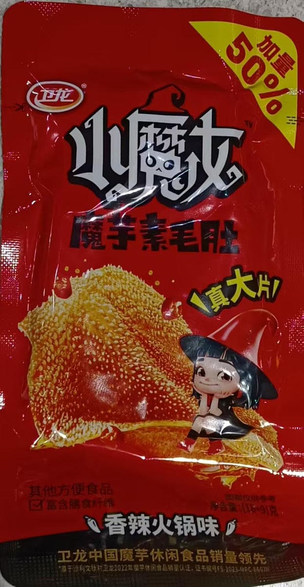 / 27g卫龙小魔女魔芋素毛肚 香辣火锅味 konjac tripe spicy hotpot flavor
