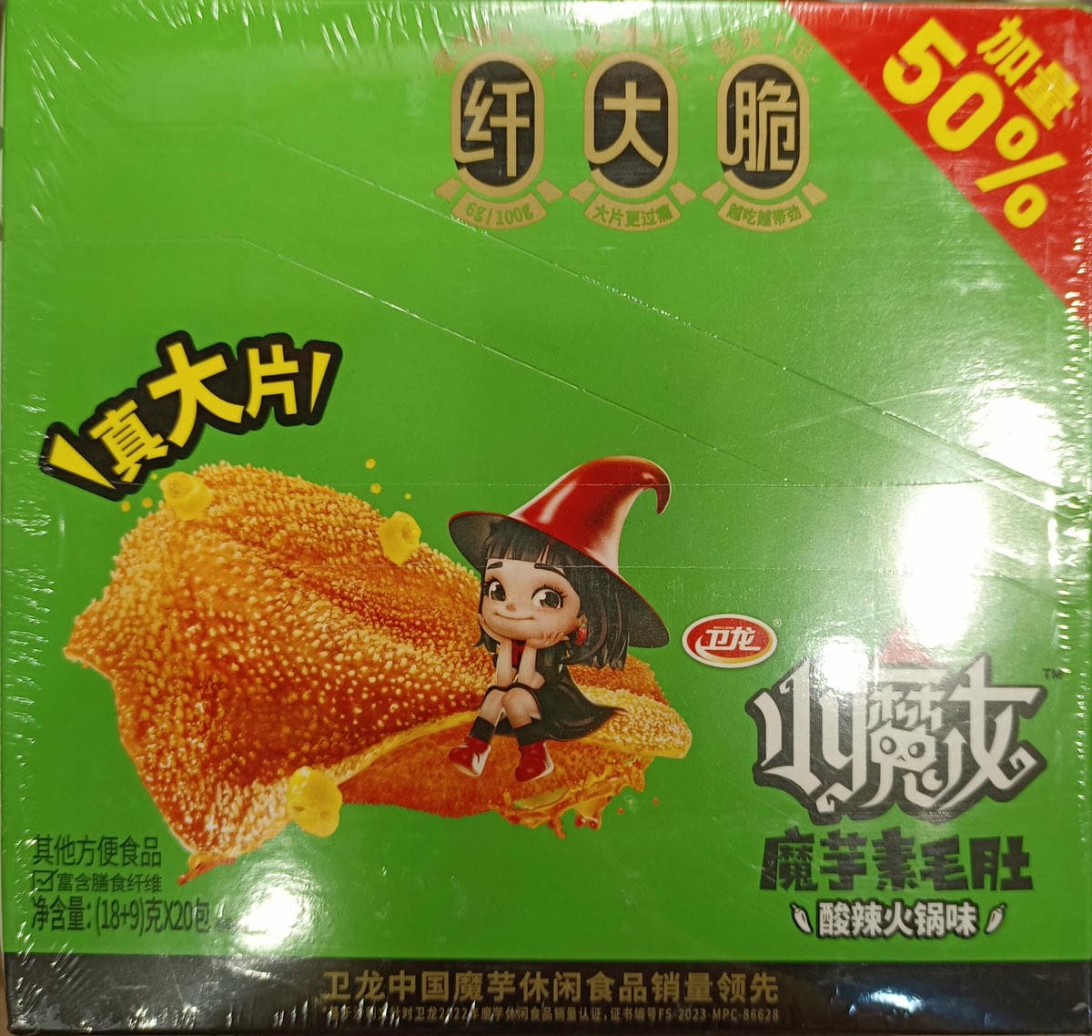 / 27g*20 卫龙小魔女魔芋素毛肚 酸辣火锅味 konjac tripe hot and sour hotpot flavor